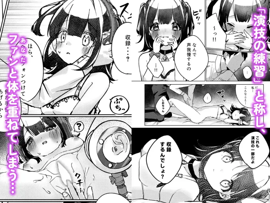 R18の音声作品の収録で「演技の練習」と称して配信者とファンが体を重ねるエロマンガ本です。